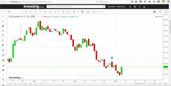 Wie ich schon am 3.11. schrieb, dass der Zuckerpreis fallen wird, tut er das auch schon ganz ordentlich. Wir sind schon bei 19,6 ct. Hier sollte der Preis allerdings sich stabilisieren. Viel Potential nach oben sehe ich zur Zeit allerdings nicht. Wie seht ihr das?