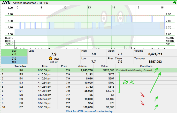 unternahm eine Rekapitalisierung der Macmin bei 1.0ca teilen, die Umbenennung der Gesellschaft (vielleicht nicht unangemessen) nach dem hellsten Stern in den Plejaden im Sternbild Stier. Für diejenigen Glück, wieder zu investieren dann ist der Anteil der Marktleistung von Alcyone Ressourcen so weit ist nichts weniger als stellare worden. zwei weitere Kapitalerhöhungen folgen im vergangenen Jahr - ein $ 3.700.000 erhöhen auf 2.5c in April 2010 und $ 16.600.000 Anhebung auf 3.5c im Dezember