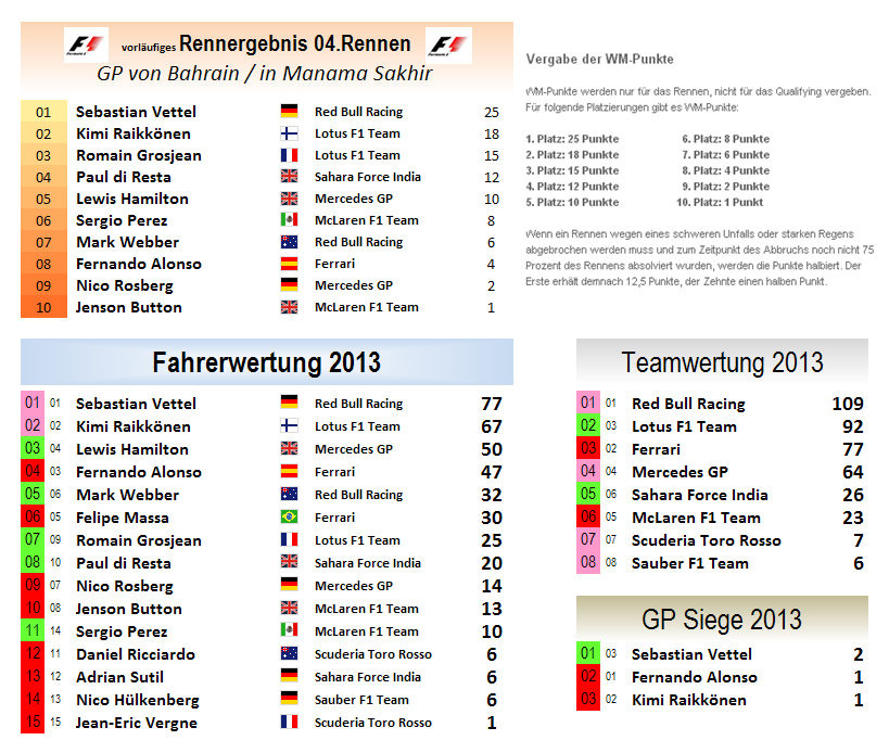 Start des Großen Preises von Bahrein ist 14:00Uhr