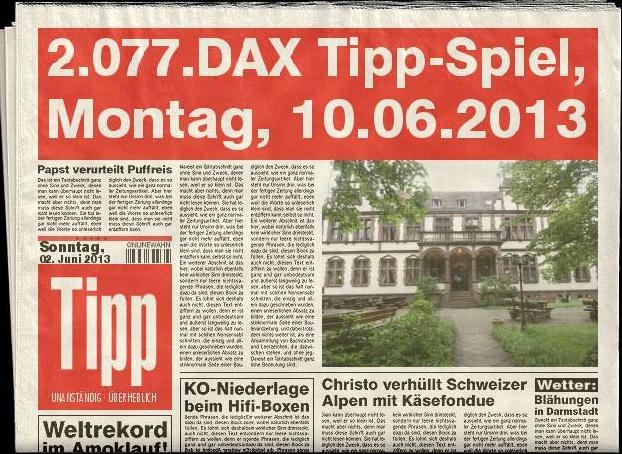 2.077.DAX Tipp-Spiel, Montag, 10.06.2013,17.45 Uhr, DAX ....???