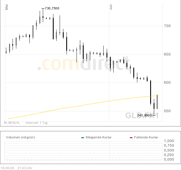 nachdem die 200 Tage Linie verletzt wurde könnte es bis 570 runtergehen.