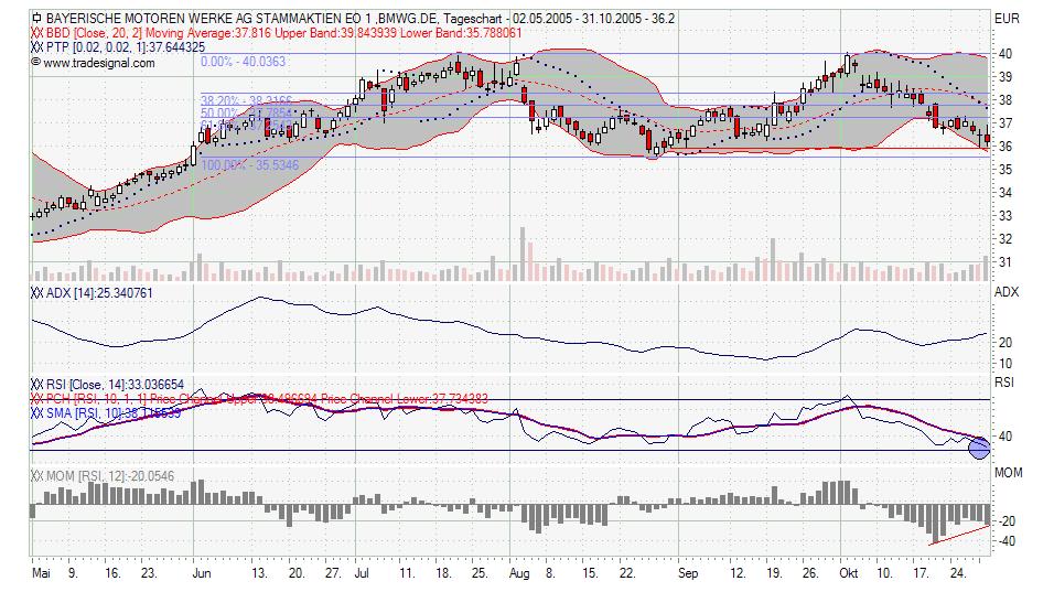 den Filter mal wieder vergessen *gg* Macht aber nix, dafuer füg ich Euch ein Update zu Münchner Rück rein, bis jetzt läuft´s nach Plan... Wollte heute nachkaufen aber Limit hat nicht gezogen .. Momentum mit Kaufsingal, Bollinger eng zusammen, spricht für baldige Kursbewegung die Richtung kann für mich nur oben sein, Momentum weist auf schon steigende Kurse hin. Mal weiter beobachten ...