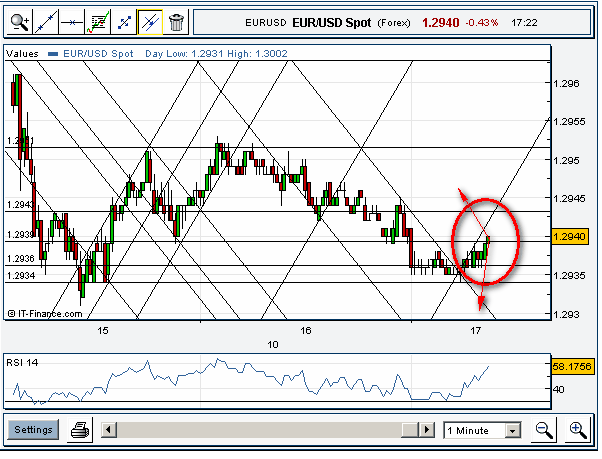 der 1 minute chart sieht eine Seitwärtsbewegung zwischen 1,29-4 und -5