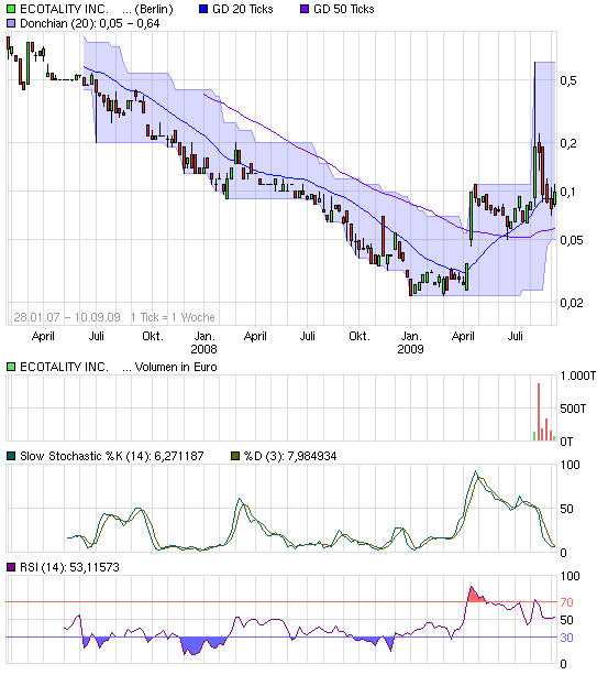 Mittlerweile sollte die deftige Verwässerung allerdings im Aktienkurs "eingepreist" sein und der Fokus der Anleger sich wieder mehr auf das operative Geschäft richten. Bei Ecotality muss mit größeren Kursausschlägen in beide Richtungen gerechnet werden - in nächster Zeit könnte es aber durchaus wieder nach oben gehen. Am Mittwoch schloss der Titel in New York bei 0,131 Dollar, was 0,09 Euro entspricht. Auf diesem Niveau können sich spekulativ eingestellte Anleger eine kleine Position ins Depot legen.