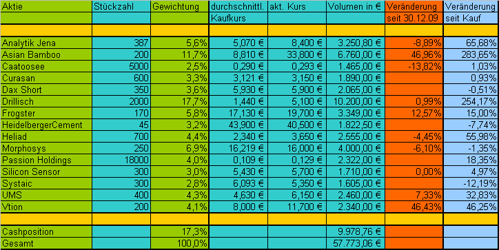 Ein Blick auf #2 genügt eigentlich, da dort das Startkapital angegeben ist. Das Startkapital der Einzelpositionen und die Kaufkurse siehst du ja sowieso in der Tabelle.