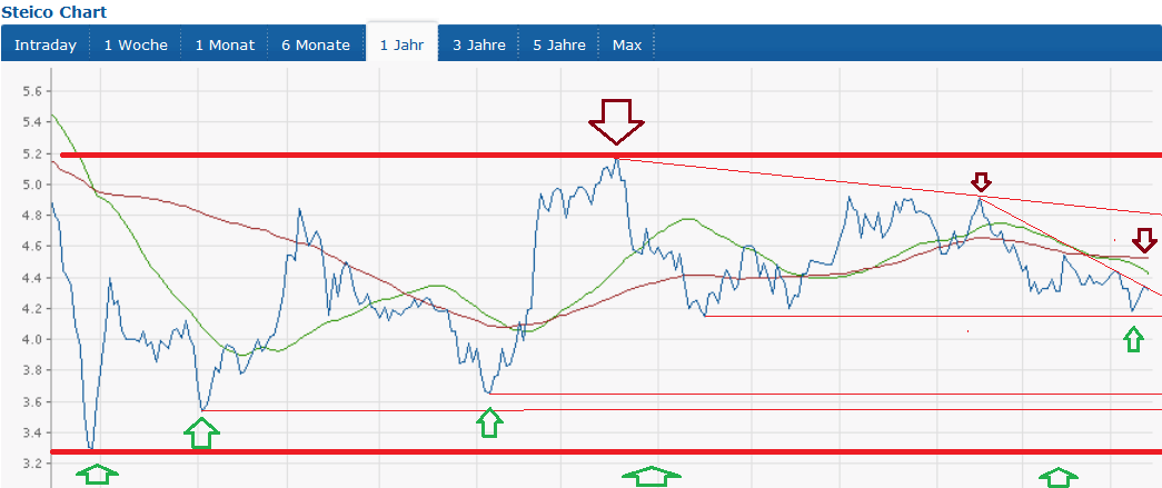 Aktuell dürfte die Steico SE eine recht stabile Nachfrage wg. steigendem Bedarf an Wohnobjekten in Deutschland haben. Interessant wird es wenn die Eurokrise auf die Schlussgerade geht. Hier könnte ich mir, um eine Inflation entgegenzuwirken, deutlich höhere Zinsen für Kredite vorstellen. In diesem Fall könnte sich das negativ auf den Kurs auswirken. Allerdings dürfte das Ende bzw. eine eindeutige Maßnahme zur Beendung der Krise für steigende Investitionen in Europa sorgen (Anzug der Immobilienpreise wie wir es aktuell in den USA beobachten). Denke die Argumente sind recht ausgeglichen.