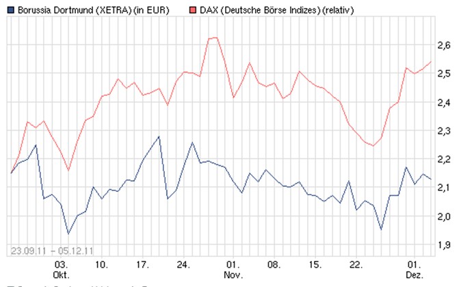 als Borussia nach ein sehr enttaüschender Saisoneröffnung (6 Spiele, 7 Punkte) in der Tabelle am 11er Stelle lag, lag der Schlußkurs bei 2,15 €.