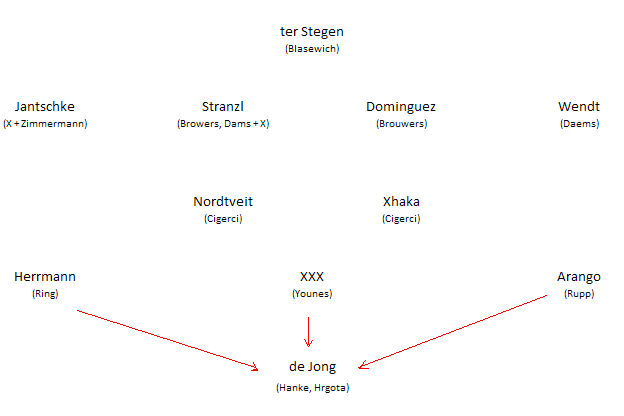 so würde meiner Meinug nach vllt was funktionieren Klar - ter Stegen im Tor....  (Spie­leranzahl 1) System 1