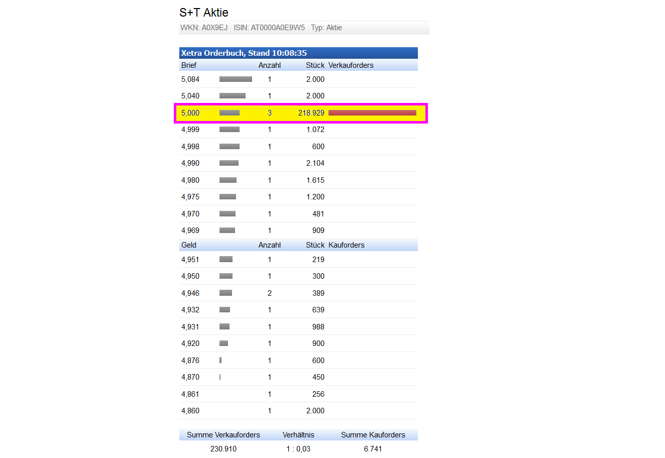 die einzelne große Order bei 5,0 € ist glaub ich
