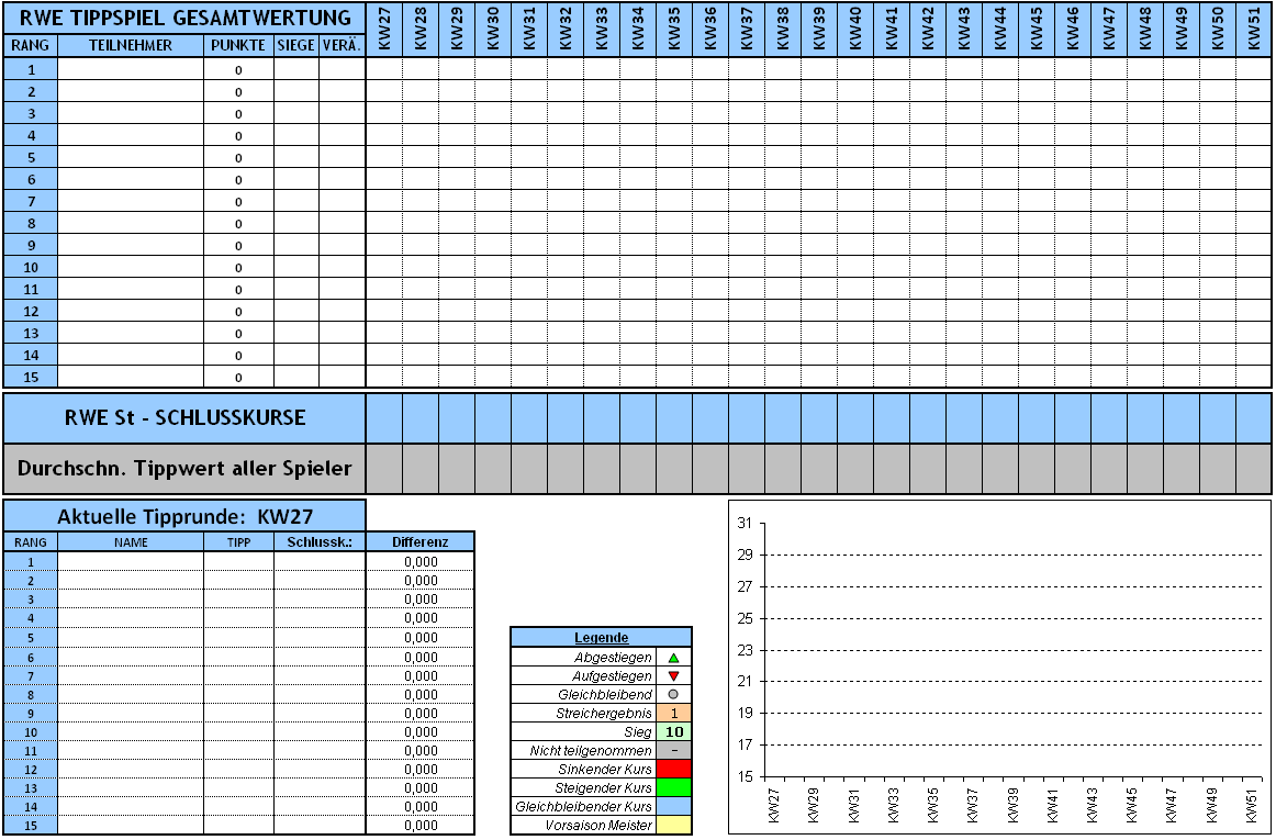Guten Tag liebe Tippgemeinde. In der aktuellen Saison gibt es noch ganze fünf Tipprunden, dann steht der Sieger des ersten RWE - Tippspieles 2013 fest. Ich denke es ist daher an der Zeit, meine Änderungen für das kommende Jahr Preis zu geben. Die Punktevergabe ist offensichtlich gut angekommen du wird eins-zu-eins beibehalten. Es wird einige Neuerungen im Layout der Auswertung geben. Welche genau, könnt ihr aus der Vorschau unten entnehmen.