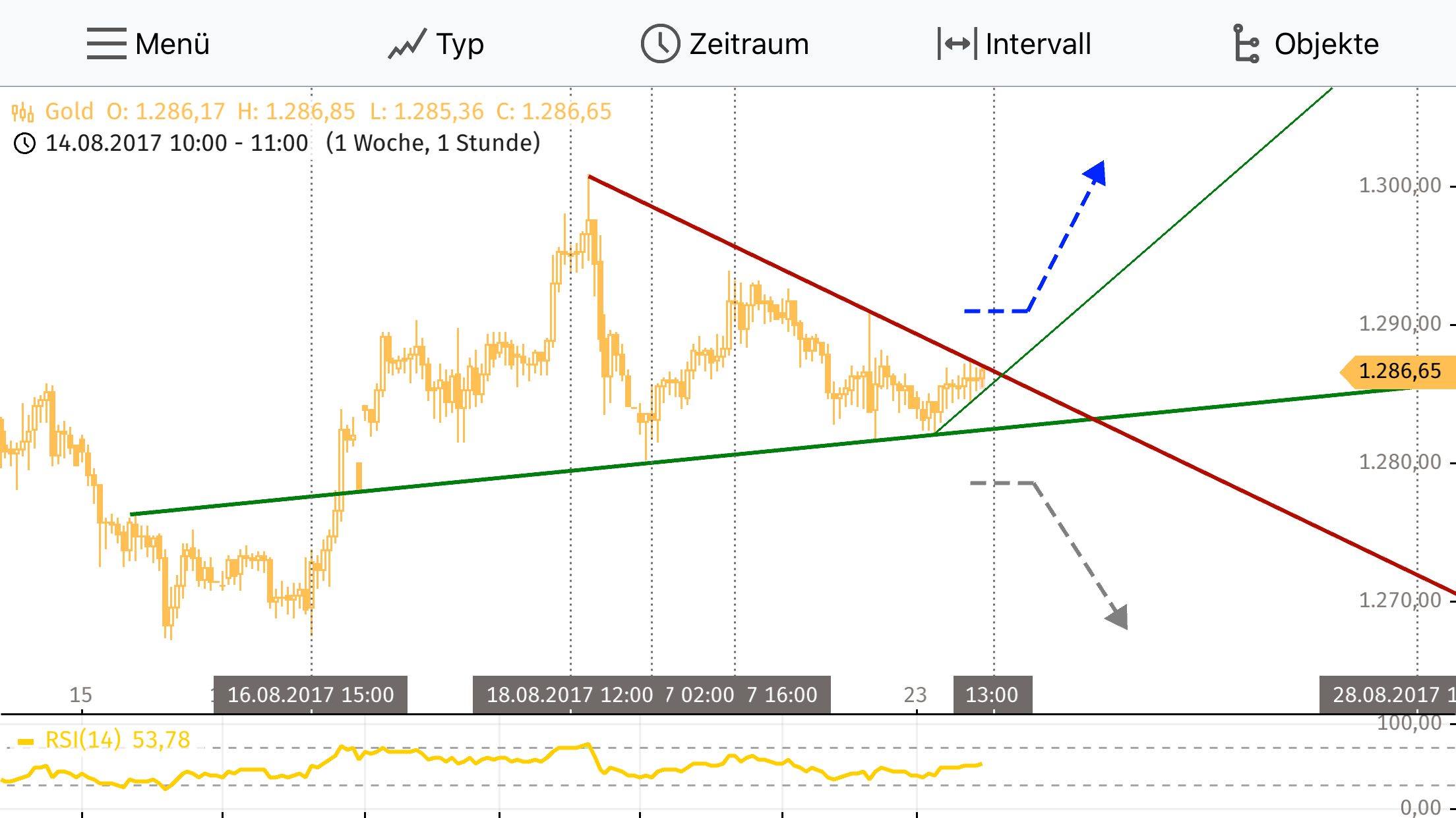 Der heutige Intradaychart sieht übrigens vielversprechend aus. Morgen werden dann hoffentlich wieder die 1300 getestet