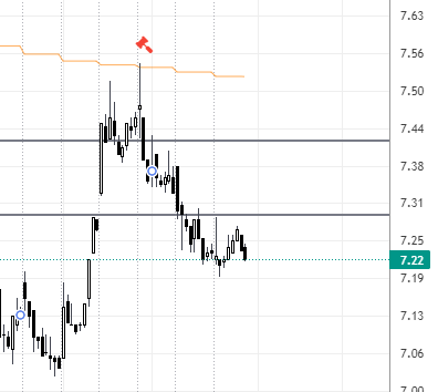 Stattdessen da sind wir immer noch. Wir haben von unten den Bereich 7,2x berührt und sofort nachgegeben.
