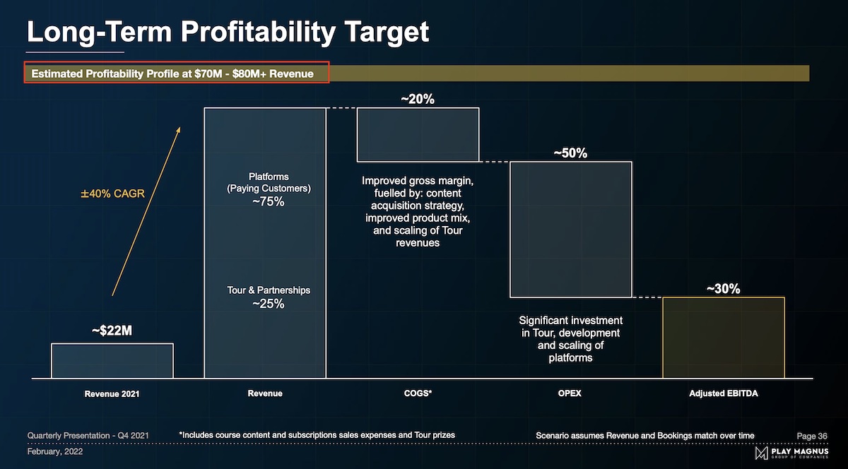 In der Q4 Präsi wird geschrieben, dass sie ab 70-80 Mio. Umsatz die Rentabilität erreichen wollen. Es wird von 30% AEBITDA ausgegangen.