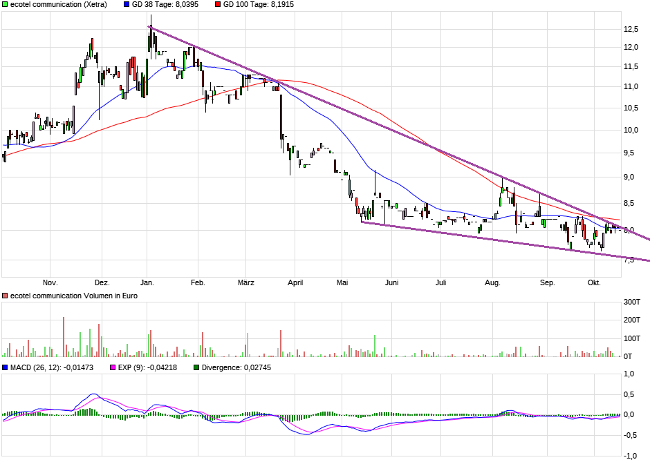 Seit gestern aber plötzlich größerer Verkaufsdruck für Ecotel-Verhältnisse. In Stuttgart/Frankfurt stehen große Blöcke bei 8,00 € auf der Nachfrageseite und im Xetra gabs auch kleinere Verkäufe.