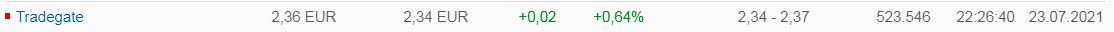 Den Tag über ist das anders. Dort wird jeweils der LETZTE Trade am jeweiligen Börsenplatz (Hamburg, Frankfurt, Tradegate...) mit der genauen Stückzahl und der genauen Uhrzeit angezeigt. Das heißt, dass das System am Ende des Tages umschaltet und dort dann die Gesamtsumme des Gesamt-Tages anzeigt.