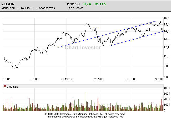 Aegon will im Mai 2012 mit einer Dividende von 0,10 Euro beginnen. Die Schulden wurden komplett - anl. der Finanzkrise - an den holl. Staat zurückgezahlt. Gut so. Der Konzern strebt in den Jahren 2011 - 2015 eine jährliche Ertragssteigerung von 7 - 10 Prozent an, dann wären auch wieder Übernahmen vorgesehen. Eine hoffnungsvolle Entwicklung für den Versicherer. Die Aktie müßte wieder Aufwind bekommen. M.E. ein günstiger Einstiegskurs. Diese Entscheidung muß aber der Anleger selbst treffen.