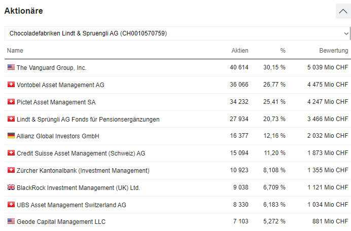 Eine Liste aller Fonds, die mit Lindt & Sprüngli verbunden sind bietet u.a. Onvista, s. Link hierunter.