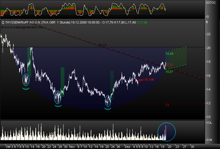 Die Ausbruchsmarke 16,60€ wurde mit gutem Volumen angregriffen & gebrochen... Markttechnisch normal, das anschließend sofort wieder in die Regionen vergestossen wird, wo der frisch eingecallte marke sein stop eventuell gesetzt hat!