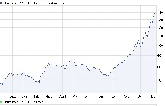 geben: Die DZ Bank liefert z. B. für alle Baumwollscheine keine Kurse mehr wegen "limit up" beim Baumwollepreis (siehe link oben). Der Baumwollpreis steigt momentan so stark, dass er sein tägliches limit nach oben erreicht und der Handel in den USA erst morgen weiter geht. Sollte der Baumwollepreis auch morgen sofort nach Handelsbeginn sein Tageslimit direkt erreichen, dann geht der Handel vielleicht übermorgen weiter usw.