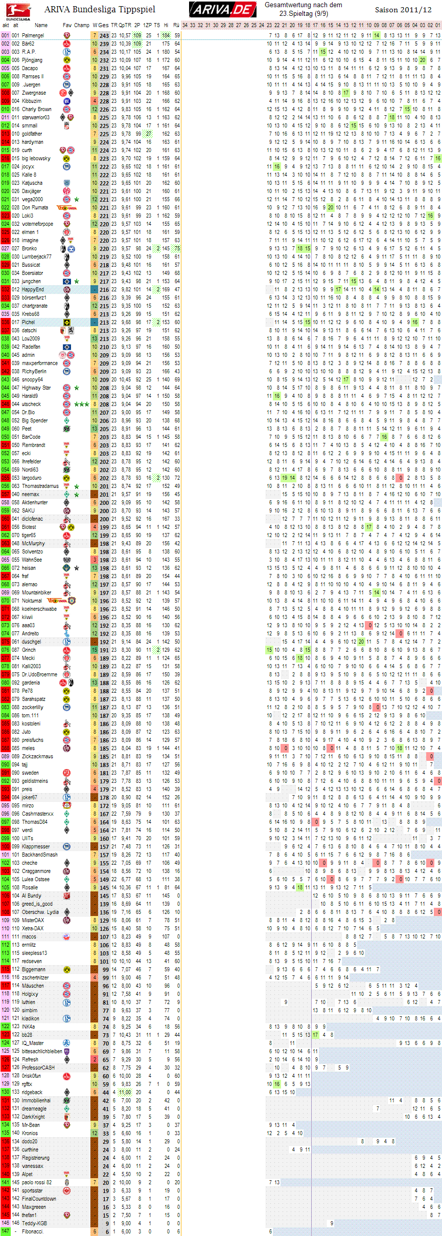 Gesamtübersicht: Gesamtwertung nach dem 23.Spieltag