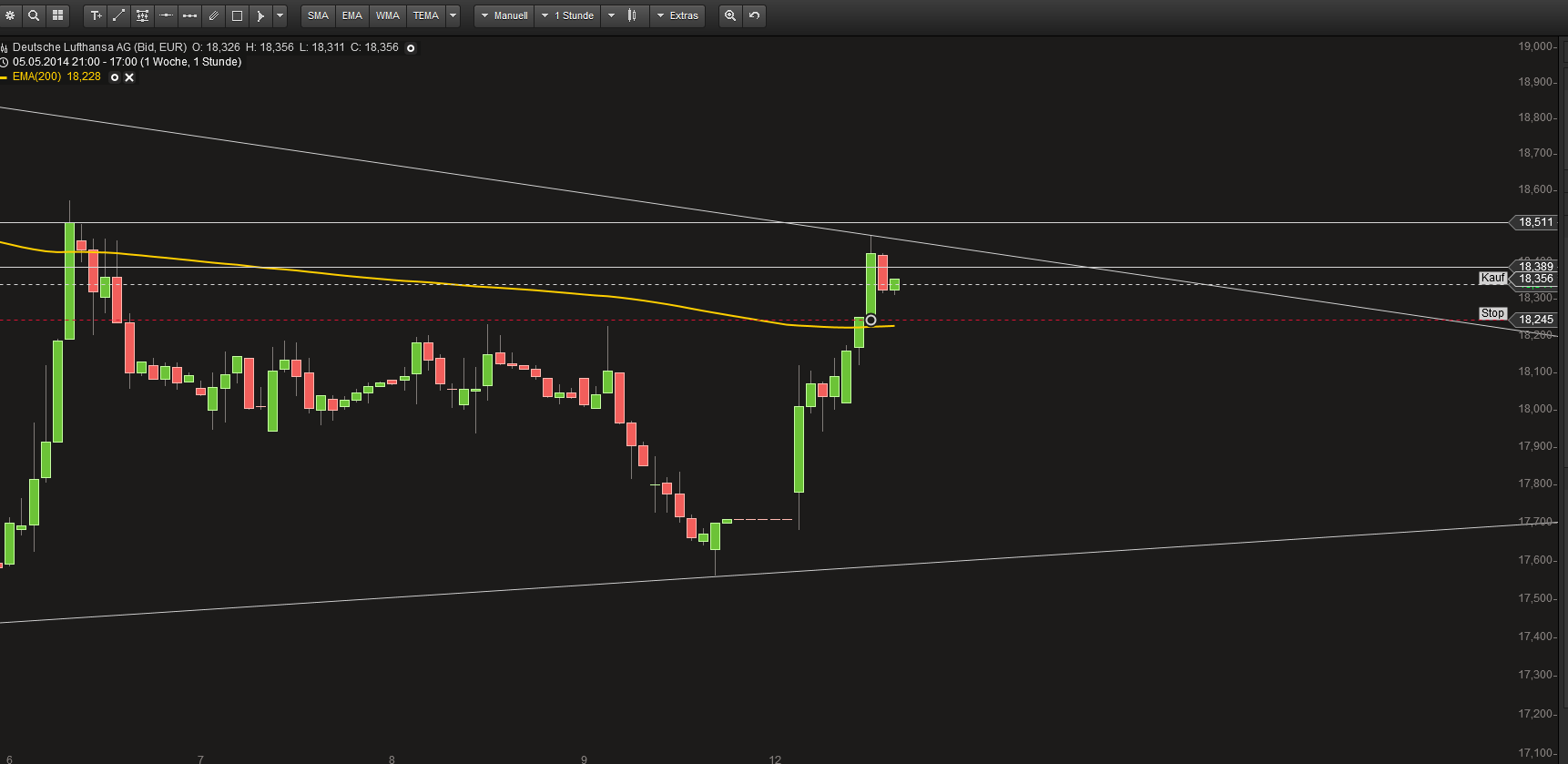 Leck mich fett! Gestern 2,15 cb0svh und dann heute morgen 2,54 190,65 -4,04 ca 186,60€ dann wäre die Aktie neutral aber von wegen der Kurs ist rasant gestiegen , um dann wieder zu fallen. Da das nächste Hoch geringer war als das vorherige war es vom Chart her klar das der Kurs nachgibt wie eine nach unten abflachende Treppe. Habe heute morgen alles verkauft leider zu früh. Naja jetzt habe ich keine Calls mehr. Chart Techniken lernen ist echt ne Wissenschaft für sich aber unvermeidbar! Dow schwächelt etwas.