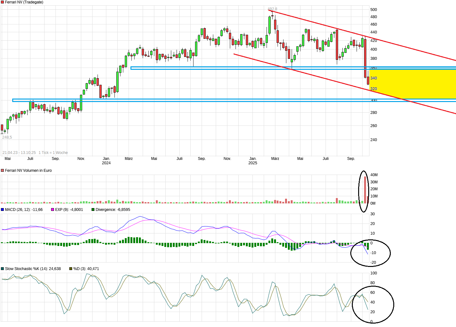 Aber was wäre, wenn es die harten Tatsachen sind und man sich die Dinge daher nicht voreilig künstlich schönreden sollte? Erstmal sind hier nach den "Bad News" die Verkaufssignale weiter intakt (siehe Indikatoren). Könnte mir daher vorstellen die Region um 300€ wäre eine Region die hier auf noch aufgerufen werden kann in den nächsten Monaten, wenn sich das düstere Bild der jüngsten News bestätigen sollte.