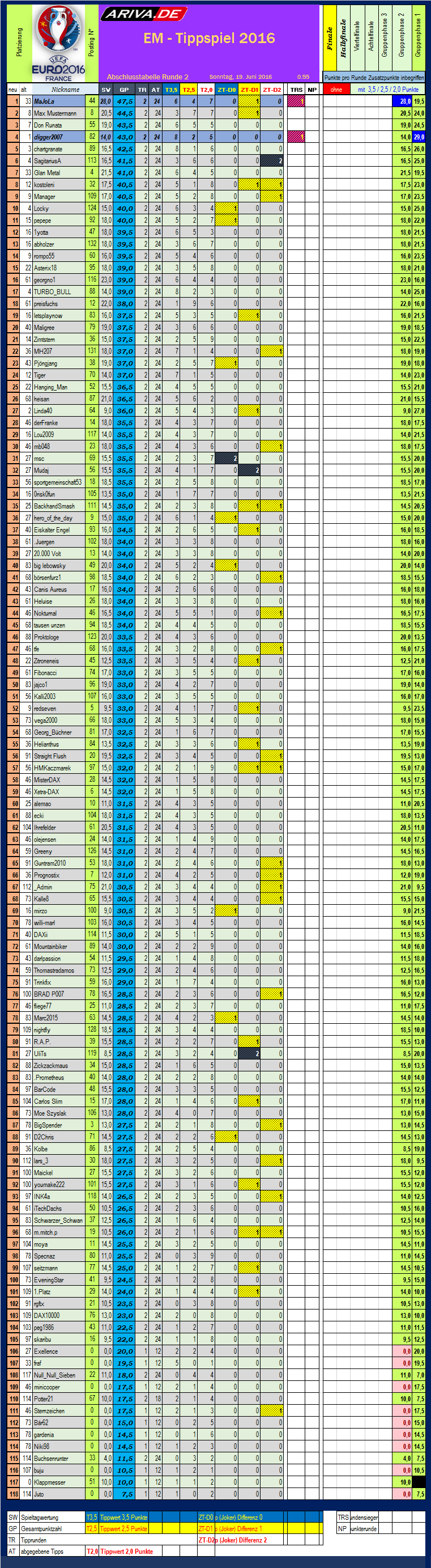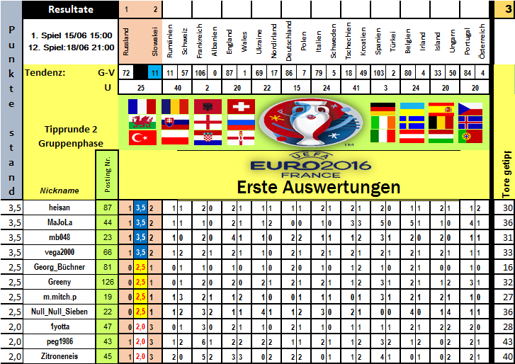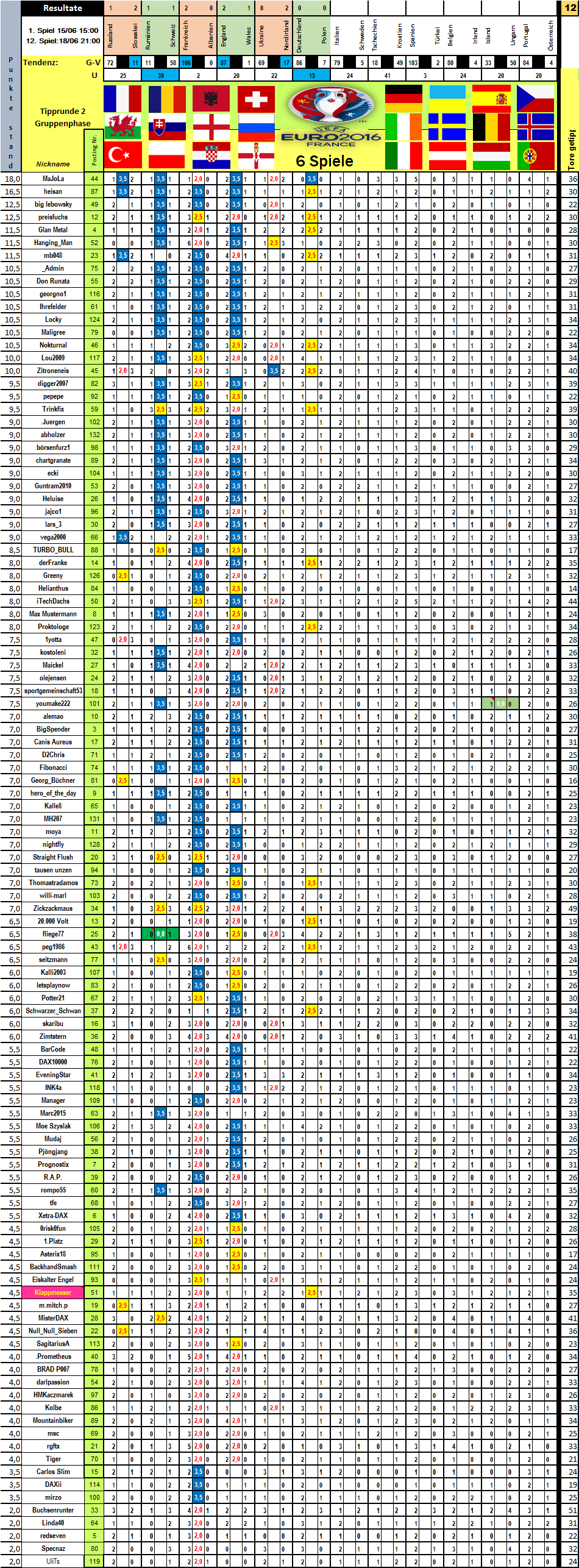 Tipprunde 2 (1. Spiel 15.06. 15:00 Uhr - letztes Spiel 18.06 21:00 Uhr)