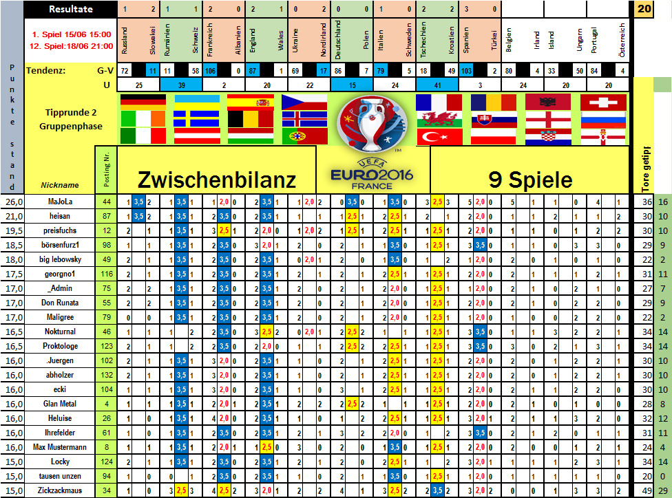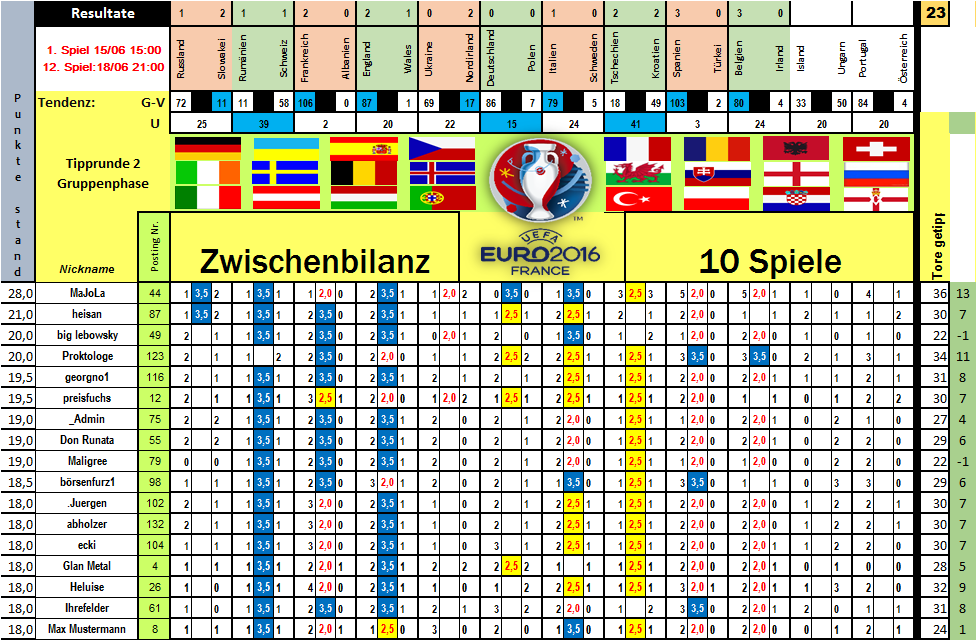 EM Frankreich 2016 - Vorrunde 2 / Änderung