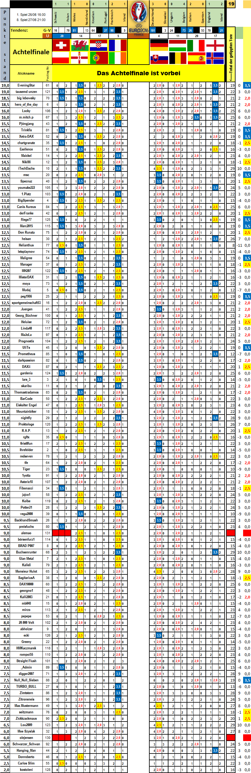 Weiter geht es nun mit dem Achtelfinale - das Achtelfinale läuft vom 25.06. bis zum 27.06. 2016!