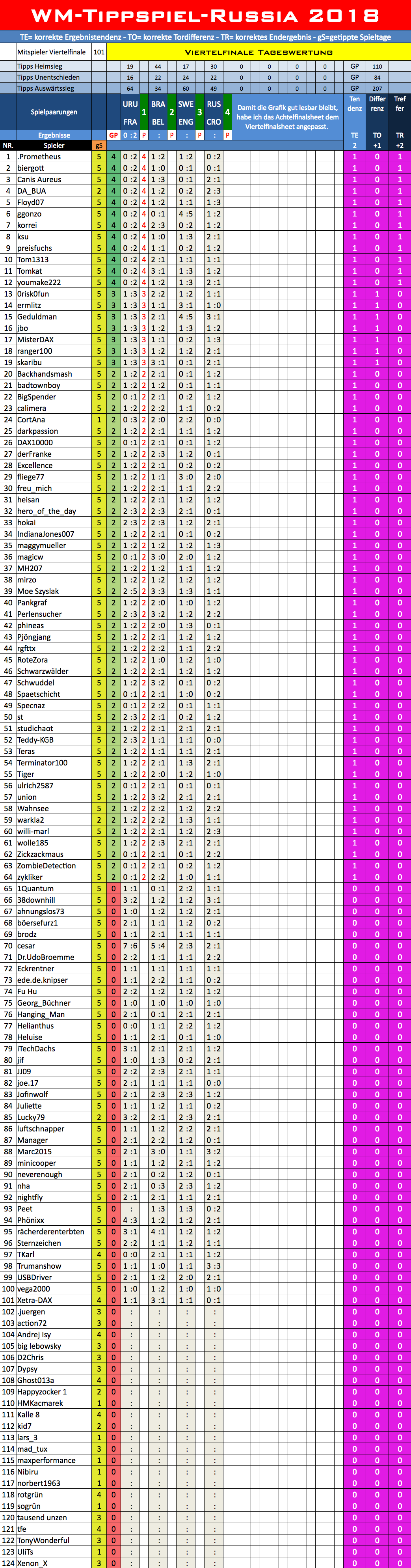 WM 2018, TippR 5 Russia, Viertelfinale