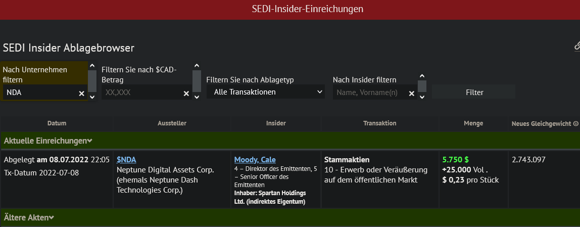 Der CEO akkumuliert von der Öffentlichkeit nahezu unbemerkt, denn er hält nun schon fast 3 Mio Aktien. Offensichtlich kennt er sein Unternehmen und ist wohl auch sehr überzeugt von Neptune..!