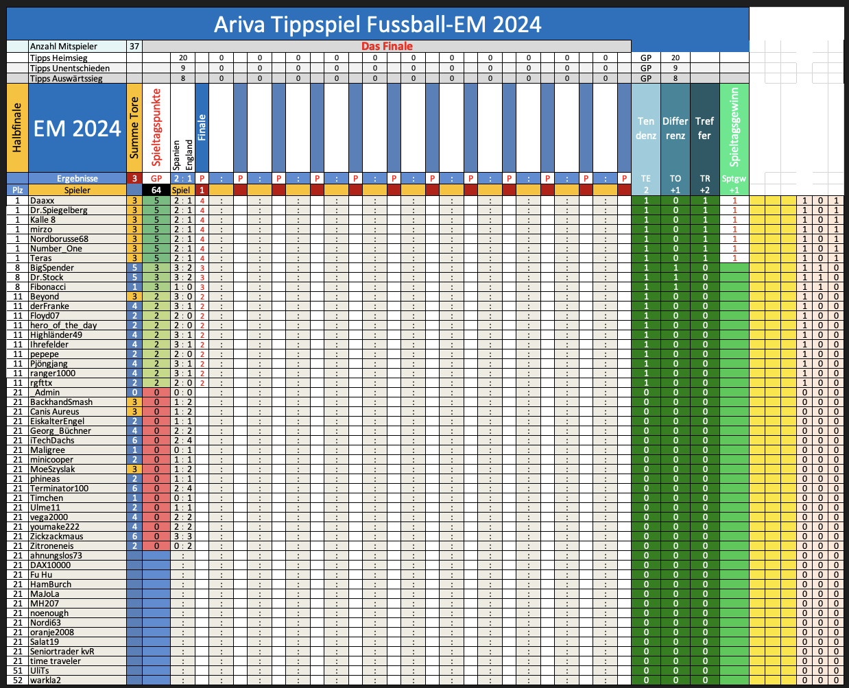 Tipprunde 7 Ariva Tippspiel EM 2024 Das Finale