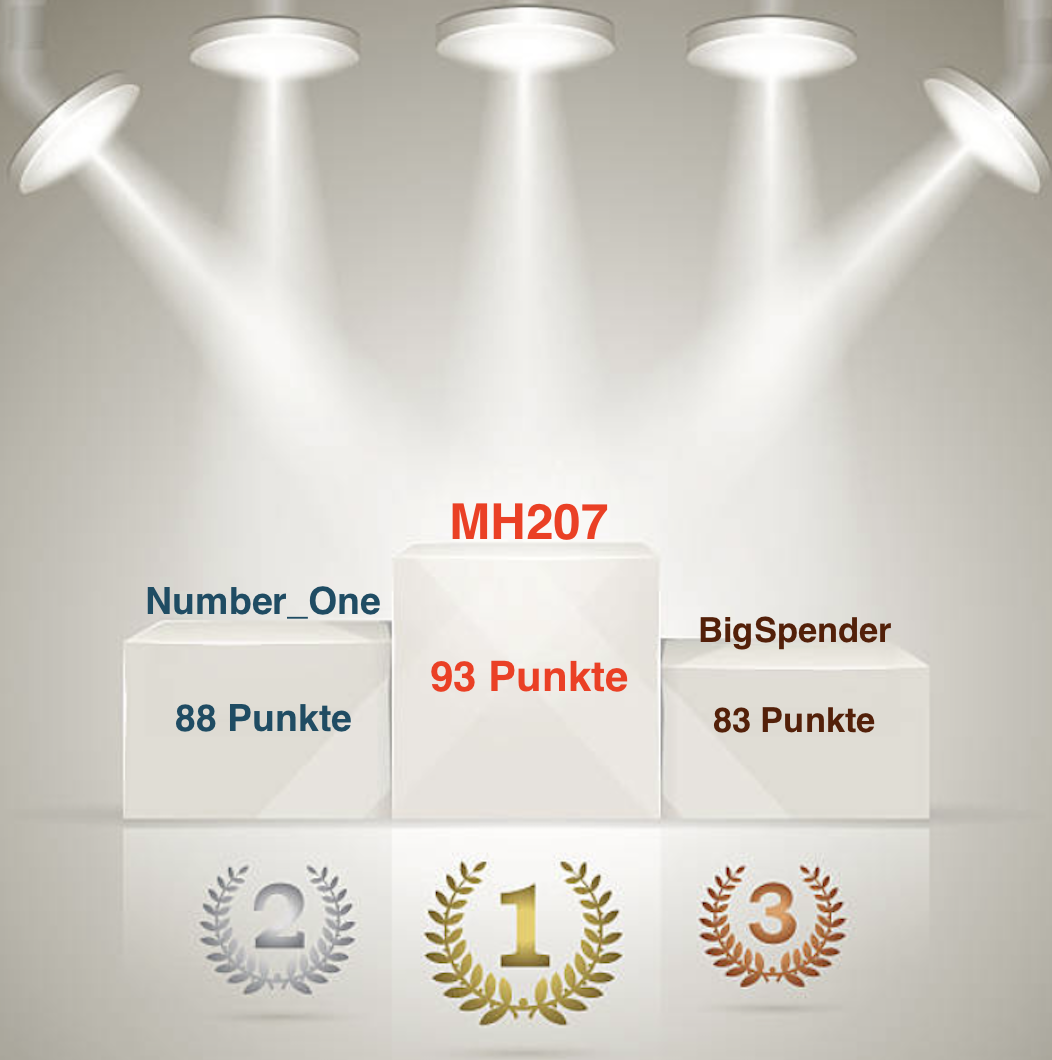 MH207 stand bereits vor dem Finale als Gesamtsieger fest, -wir grautulieren Dir zu Deinem Erfolg! Viel Spaß mit der kostenfreien Clubmitgliedschaft von Ariva für 12 Monaten (Kiel ist über Deinen Gewinn informiert).