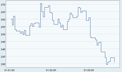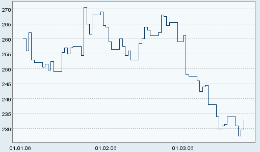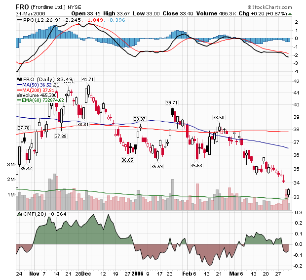 ... habe die Aktie auch eine zeitlang im Depot gehabt, ist ein recht solider Wert mit guter Dividendenpolitik. Betrachtet man die zyklischen verläufe, müsste man eigentlich einsteigen, denn Frontline war nie unter 30,-€. Da Anfang März die Dividende fällig ist (ca. 1,50$ je Aktie) sehe ich da gute Tradingchancen. Man muss aber beachten, dass die Charterraten derzeit ziemlich am einbrechen sind, auch wenn sie noch über dem Durchschnitt der letzten Jahre liegen. Der Rückgang liegt momentan bei 25% seit September 05.
